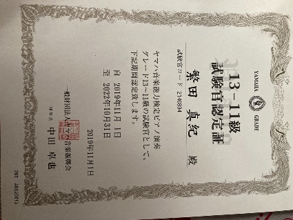 ヤマハ音楽能力検定 エレクトーン 及び指導者グレード共に4級取得♪